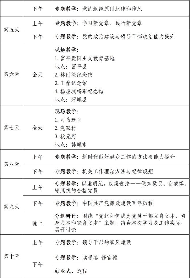 党纪学习教育专题培训班教学计划(10天)