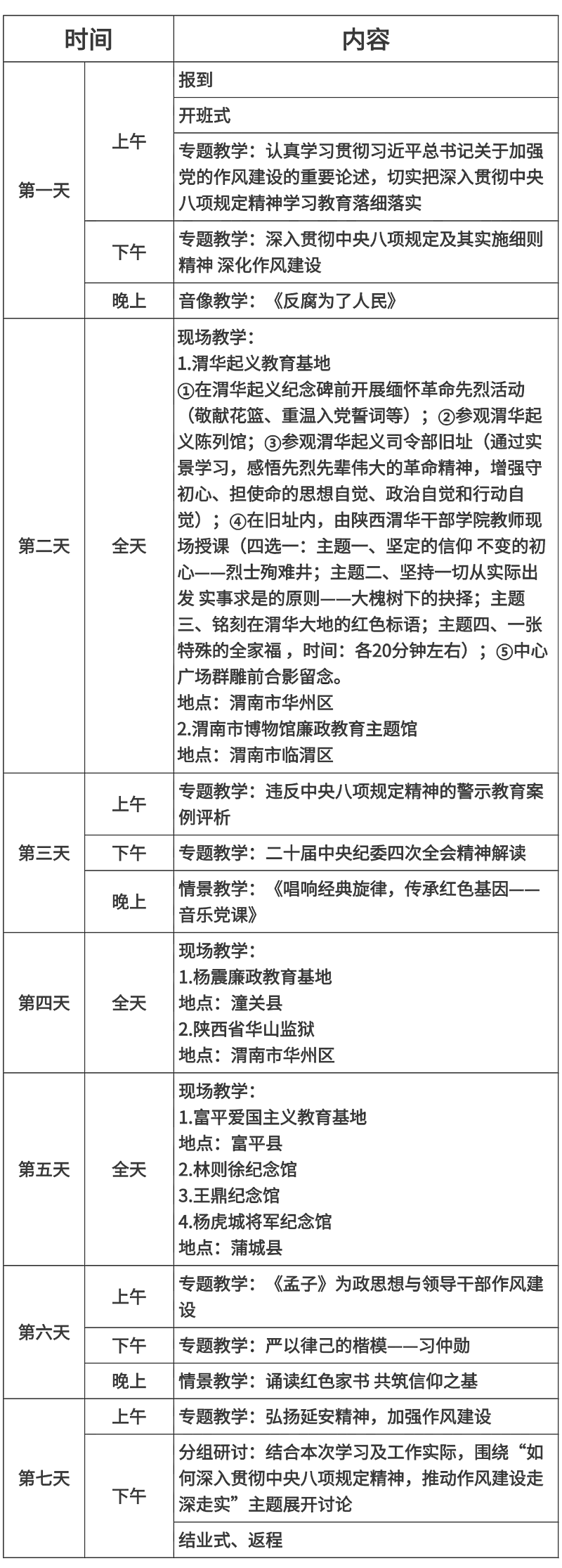 深入贯彻中央八项规定精神学习教育专题培训班教学计划(7天)