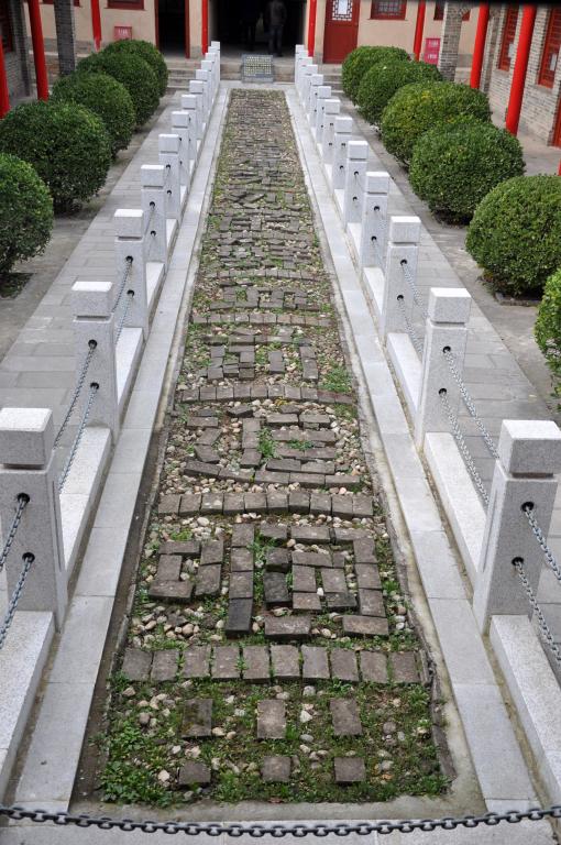 1927年9月陕西省委贯彻中共八七会议精神,确定在群众基础尚好的渭华地区开展武装斗争,1928年2月正式下达暴动决定。5月初,我党控制的许权中旅开赴高塘镇与中共陕东赤卫队会合,宣布成立西北工农革命军,刘志丹任军委主席、唐澍任总司令、王泰吉任参谋长、许权中任顾问兼骑兵队长,向西北反动派打响了第一枪,建立起方圆200平方公里的红色苏区。起义军司令部进驻高塘小学,刘志丹看到砖铺标语心潮起伏,建议再增加“同志们赶快”5字,使其更具针对性和感召力,并带领官兵重新铺定,遂使总长达20米、幅宽2.1米,砖字砂底,青白更加明晰,用以唤起民众鼓舞士气。