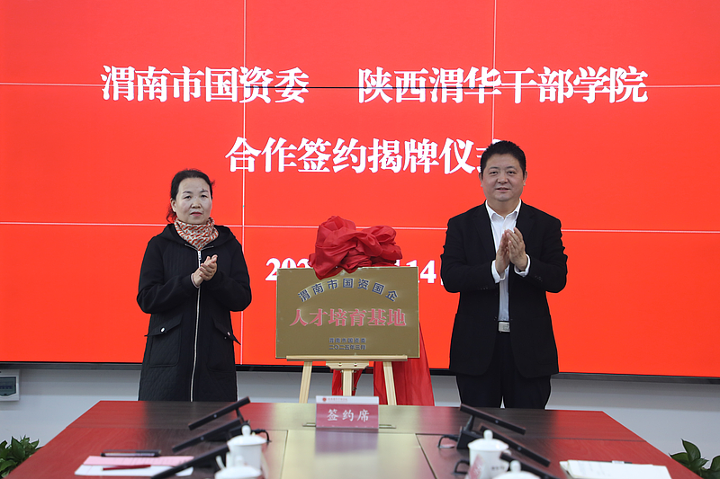 渭南市国资委党委副书记崔玲与陕西渭华干部学院党委委员、副院长王锋共同为“渭南市国资国企人才培育基地”揭牌。