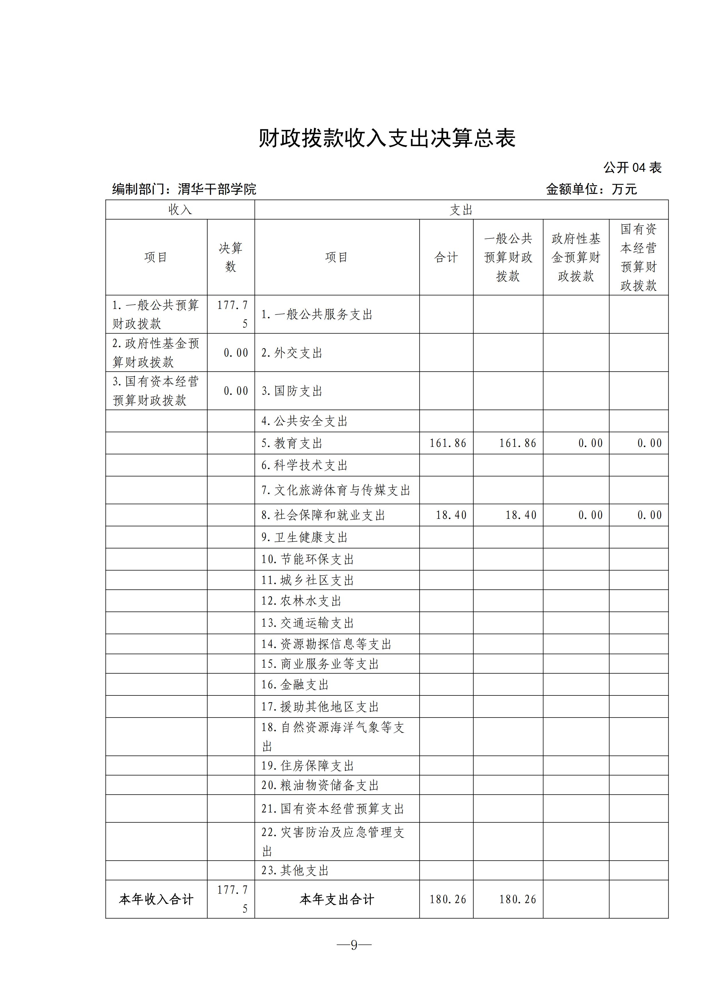 渭华干部学院2021年度部门决算
