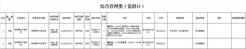 渭南市委组织部负责解释全市党群口综合管理类招聘计划。咨询电话0913-2129105;