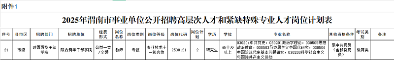 招聘岗位所须的具体条件以《2025年渭南市事业单位公开招聘高层次人才和紧缺特殊专业人才岗位计划表》(以下简称《岗位表》)的要求为准。