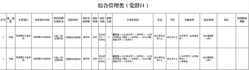 全市党群口综合管理类招聘计划, 咨询电话0913-2129105;