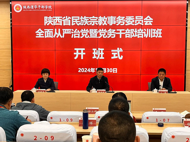 10月30日-11月1日,陕西省民族宗教事务委员会全面从严治党暨党务干部培训班在陕西渭华干部学院成功举办。省民宗委专职委员、机关党委书记潘传斌出席开班式并作动员讲话,陕西渭华干部学院党委委员、副院长王锋致辞,开班式由省民宗委机关党委专职副书记、机关纪委书记田敏娟主持。