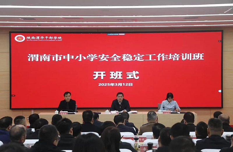为深入学习贯彻全省教育大会精神,落实省市有关校园稳定工作会议要求,切实扛牢学校安全稳定政治责任,3月12日,渭南市中小学安全稳定工作培训班在我院顺利开班。渭南市政府副市长刘宝琳出席开班式并作开班动员讲话,渭南市政府副总督学鲁建春宣读培训纪律,开班式由渭南市教育局党组书记、局长马俊玲主持。来自渭南市教育系统校园安全管理人员及大规模学校负责人共计360人参加培训。