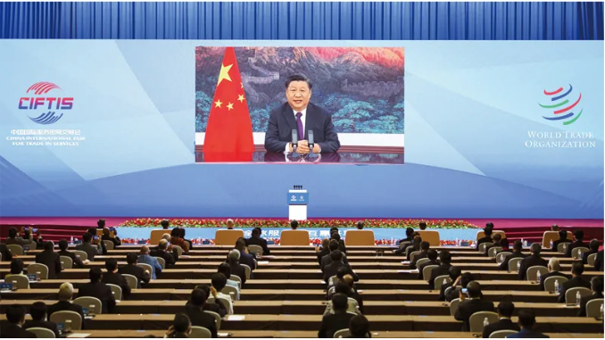 2020年9月4日,国家主席习近平在2020年中国国际服务贸易交易会全球服务贸易峰会上致辞。 新华社记者 李涛/摄