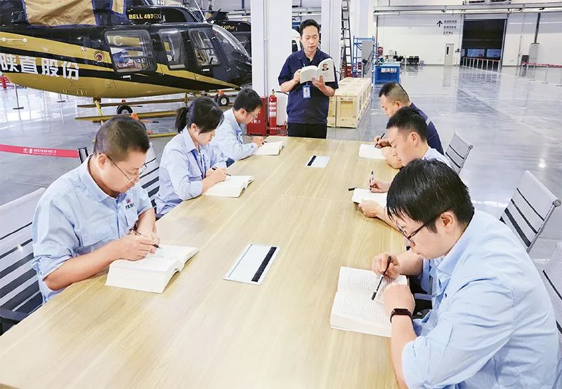 2022年9月9日,陕西直升机股份有限公司第三党支部在公司产业园生产制造区读书角进行《习近平谈治国理政》第四卷专题学习。陕西日报记者 张辰/摄